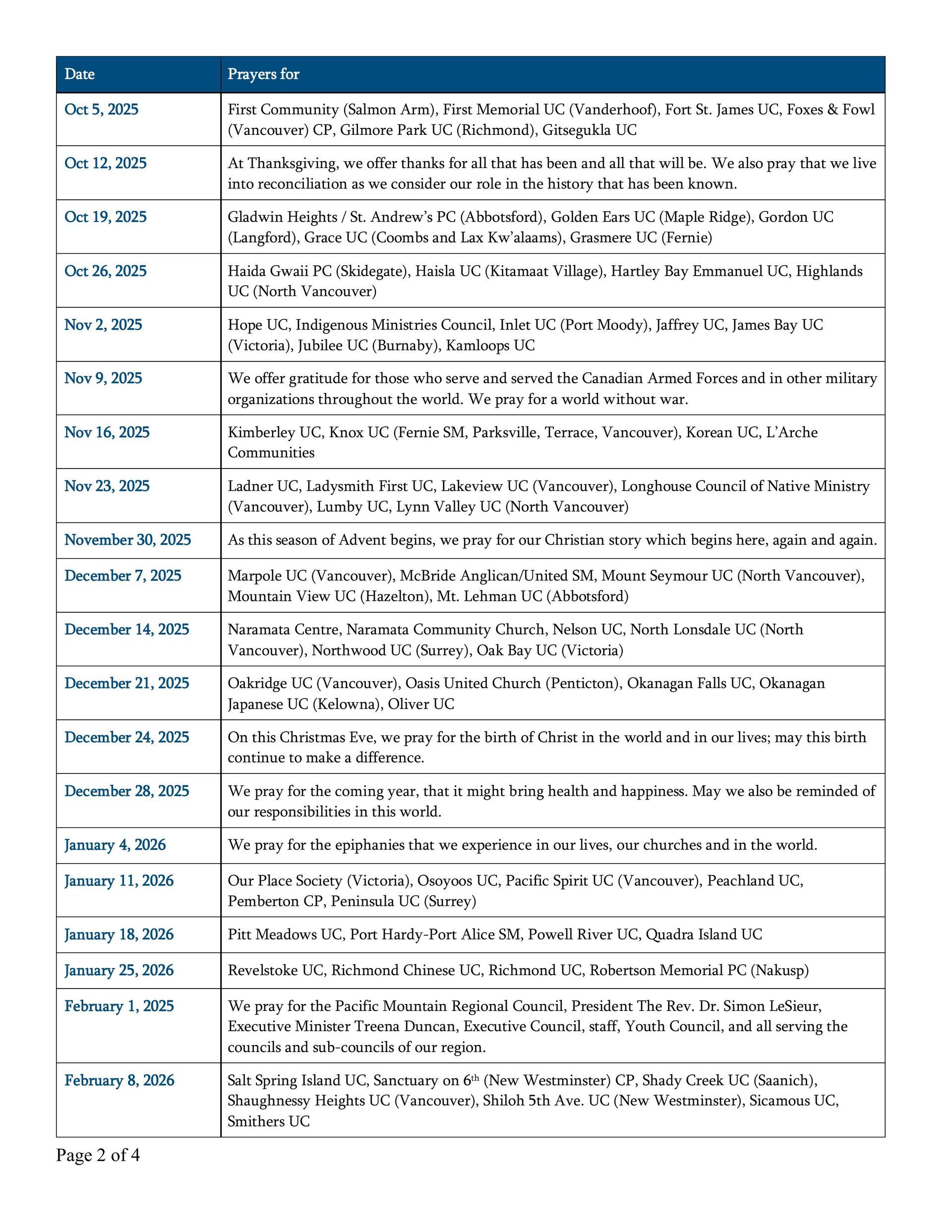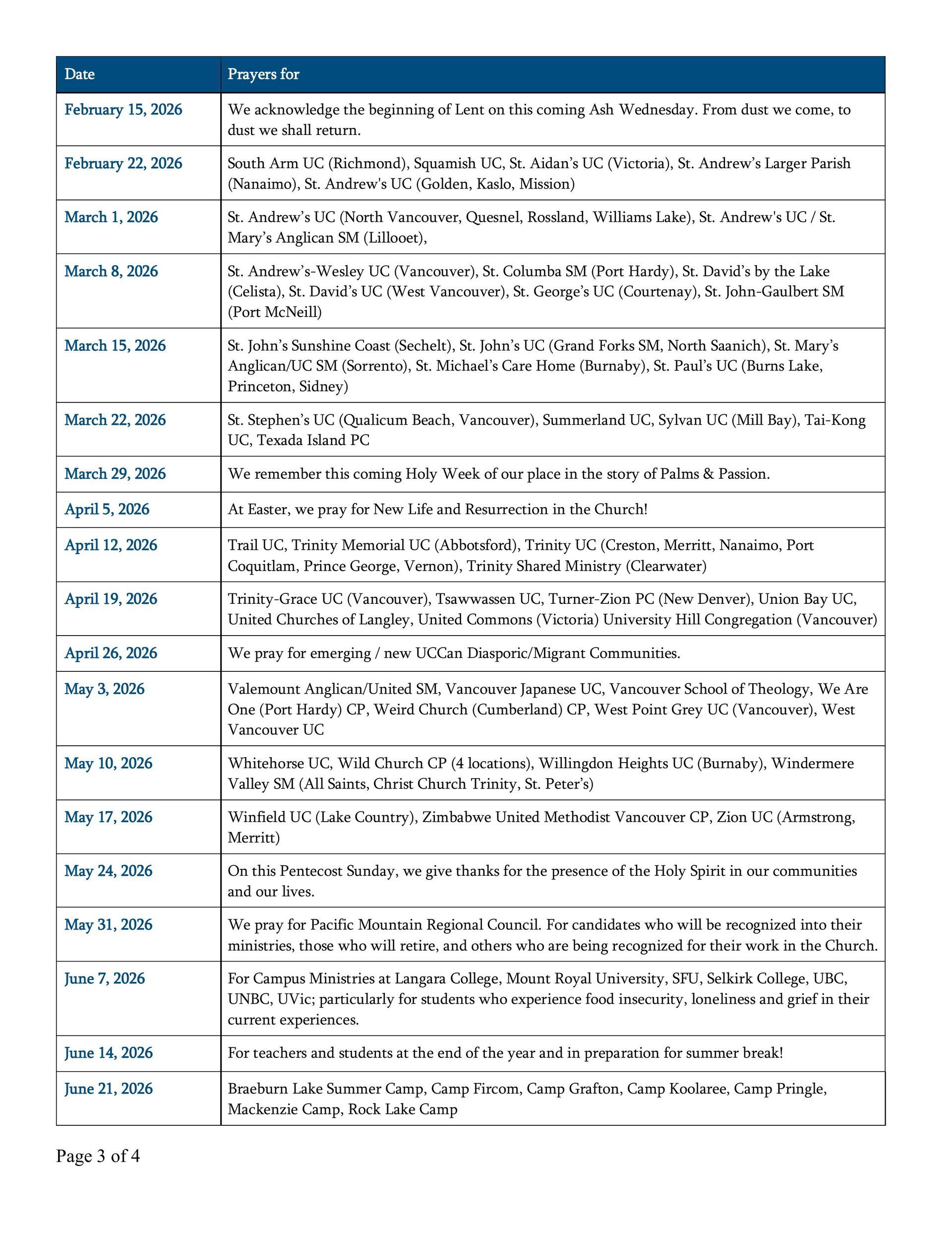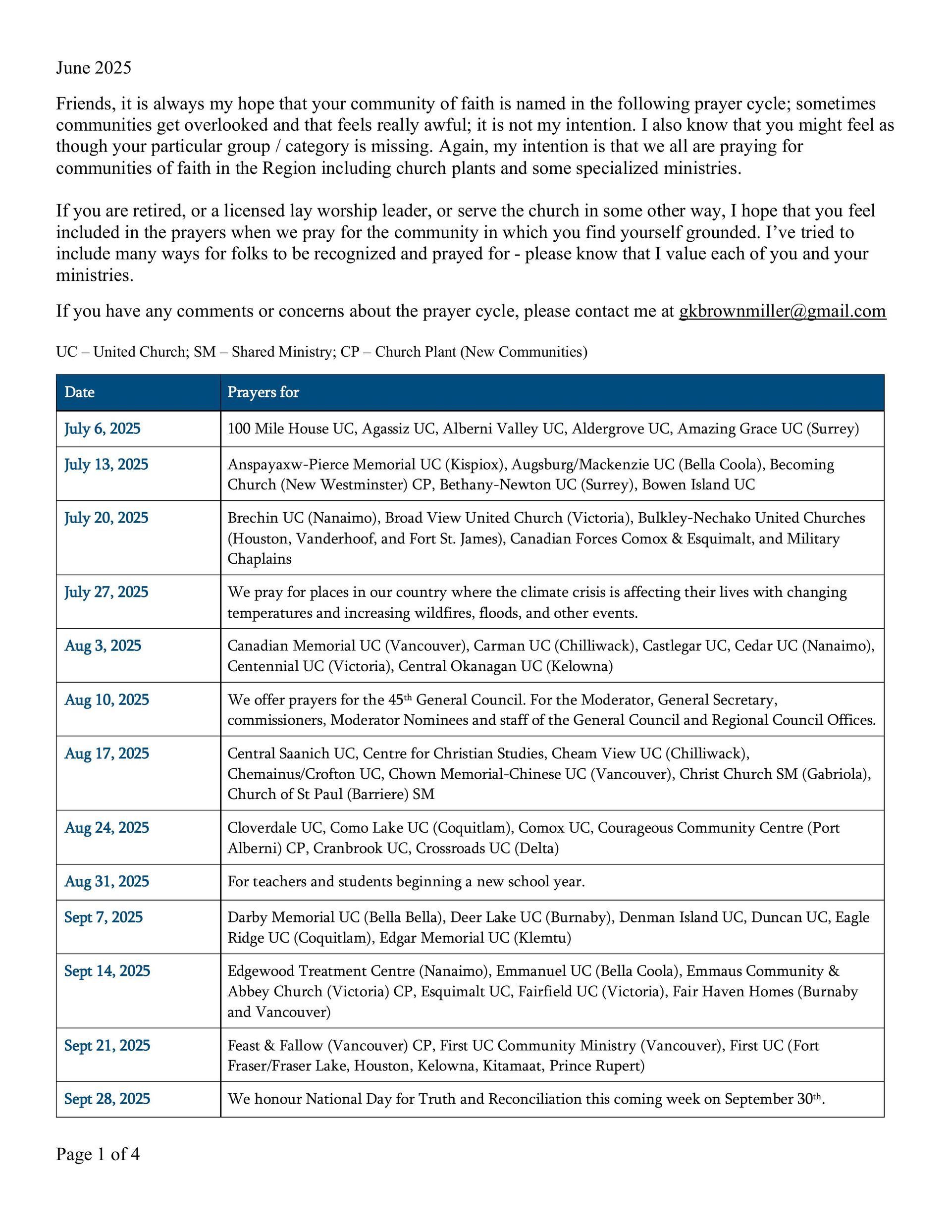 Each Prayer Cycle invites Prayer each week for a Community of Faith in the Region.